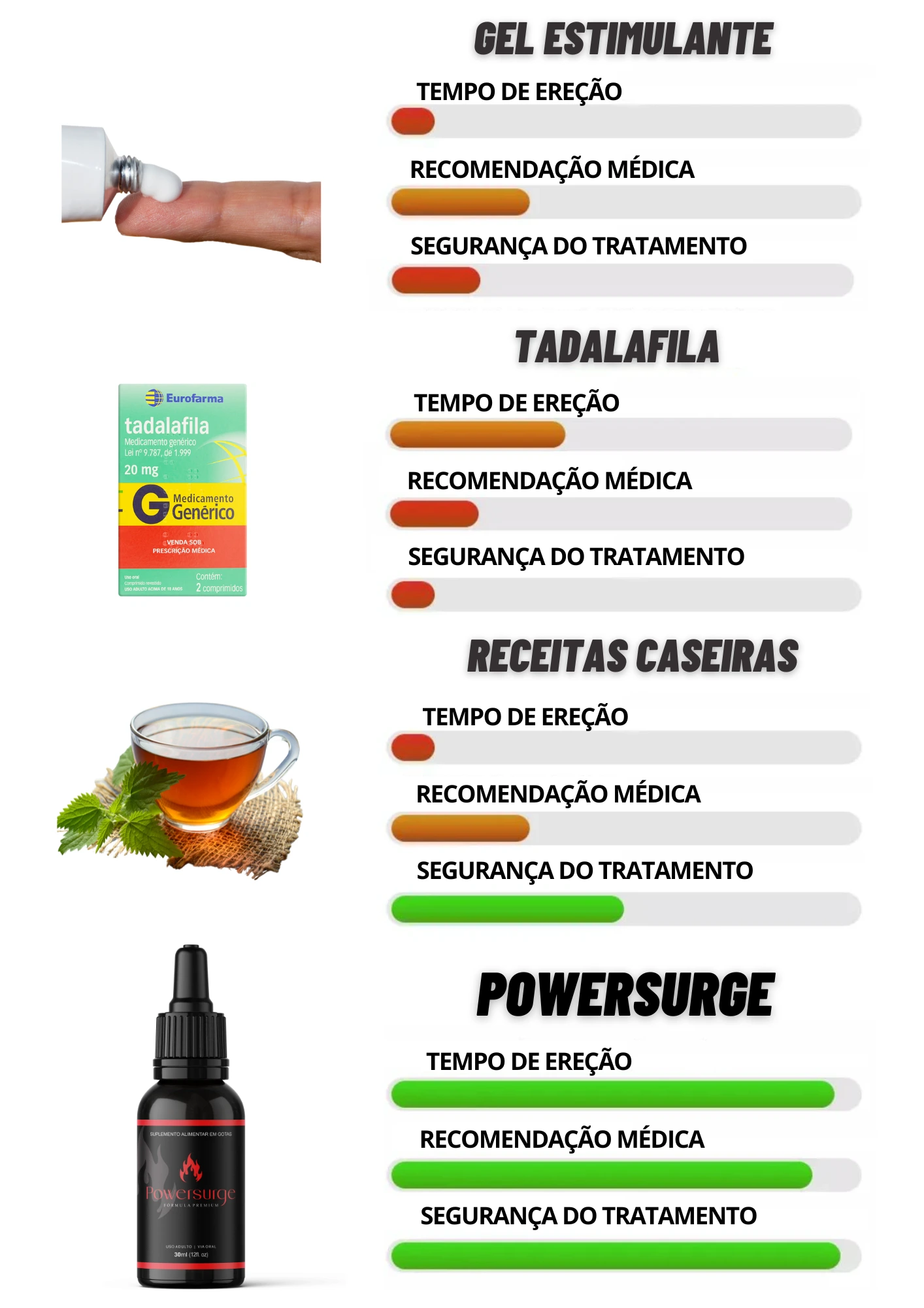 Quando colocamos o PowerSurge lado a lado com outras alternativas frequentemente utilizadas pelos brasileiros com esse problema, e a diferença fica clara! Veja você mesmo: