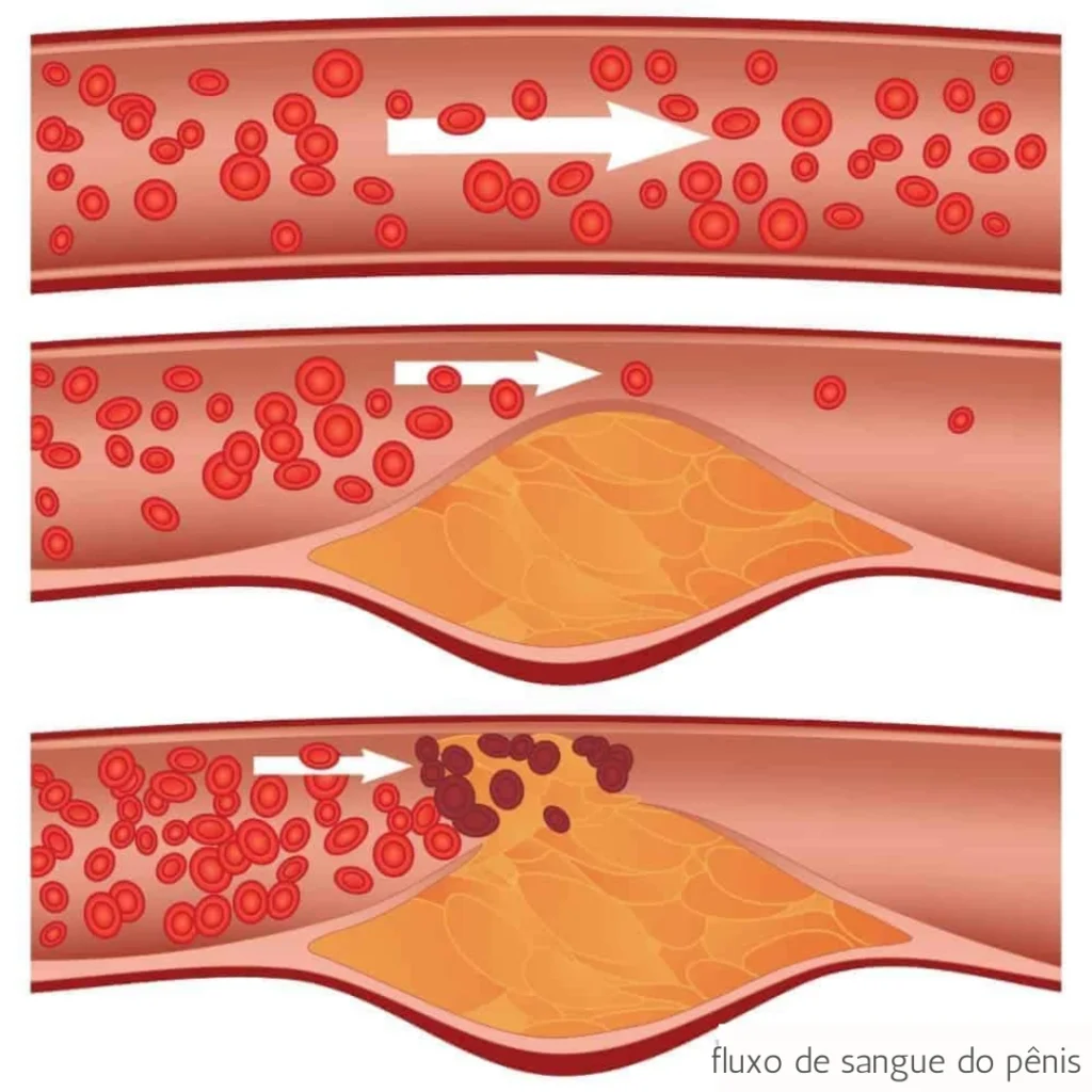 1-Oxidação dos vasos sanguíneos: Ao longo dos anos, nossos vasos sofrem danos por conta do estresse, alimentação inadequada e fatores ambientais. Essa oxidação impede o fluxo sanguíneo necessário para ereções firmes e duradouras.